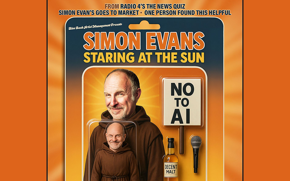 With growing evidence that we are living in a Computer Simulation – and a pretty glitchy, off-brand simulation at that – and the approaching watershed of the AI Singularity looming like a weirdly pixelated cumulo-nimbus on the horizon, BBC Radio 4 stalwart and veteran of a quarter century of highly acclaimed stand-up comedy Simon Evans is squinting at an uncertain future, and revisiting the blue remembered hills of his youth.
